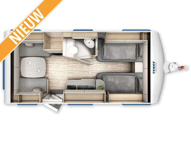 Slapen doet u op de 2 aparte bedden, die borg staan voor extra ruimte en een makkelijke instap. In de badkamer vindt u niet alleen een wastafel, maar ook een ingebouwd cassettetoilet.
