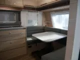 Een extra slaapgelegenheid wordt gevormd door de comfortabele, gezellige treinzit. De caravan beschikt over een middenkeuken met voldoende bergruimte, die praktisch is ingericht en met een 3-pits kooktoestel, spoelbak en kraan is uitgevoerd. De apothekerskast is perfect om al uw etenswaren overzichtelijk in op te bergen. De boiler, die in de caravan is ingebouwd, voorziet u snel van warm water. De inbouwkoelkast met vriescompartiment heeft een grote inhoud. De praktische ladekast is een handige plek voor de keukenbenodigdheden.