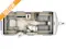 De gezellige en handige rondzit waar de caravan over beschikt, kan ook dienen als slaapgelegenheid. De keuken is in het midden van de caravan gemonteerd en beschikt onder meer over een 3-pits kooktoestel en gootsteen met kraan. Voor een snelle toevoer van warm water is er een boiler aanwezig. De ingebouwde koelkast met vriesvak is uitgevoerd in een ruime uitvoering. De keukenbenodigdheden vinden een plekje in de ladekast.