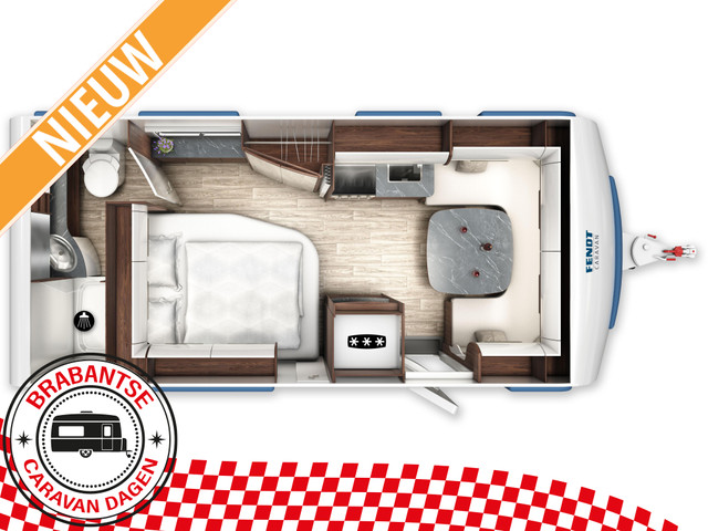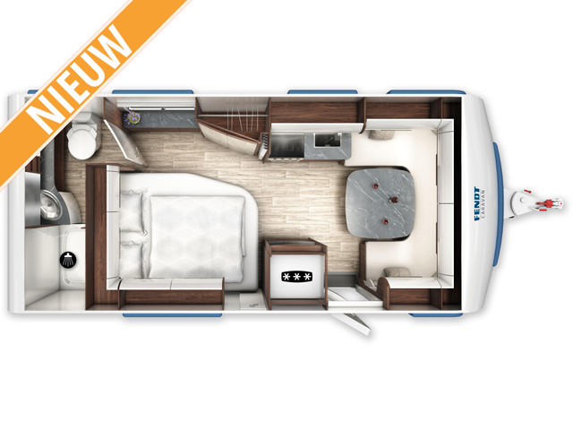 Deze Fendt Diamant biedt een praktische indeling, zodat u optimaal kunt genieten van uw kampeervakantie. Deze caravan heeft een laadvermogen van 348 kilo. Hierdoor kunt u al uw vakantiebagage prima meenemen. Uw bagage kunt u ook van de buitenzijde snel bereiken via het serviceluik.