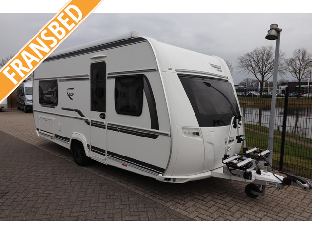Mooie Fendt 465 SFH Opal uit 2020 met fransbed. Caravan is naast zijn standaarduitrusting voorzien van o.a. 1800 KG as, DUO Control, ALKO ATC, Thule Casetteluifel op het dak, Enduro BC260 (ALU) schuifbare fietsendrager voorzijde, Vol automatische Enduro (505) mover incl. lichtgewicht accu.