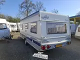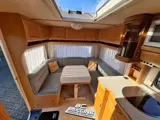 Deze caravan is voorzien van een vast frans bed voorin, met in de hoek de sanitairopstelling inclusief cassettetoilet en douche. In het midden bevind zich, tegenover de hang legkasten, de keuken. Achterin de caravan bevindt zich de ruime rondzit.