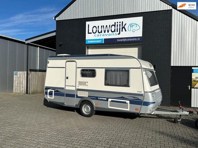 Nette en compacte Fendt Saphir met een zitgroep of 2 persoons dwarsbed en treinzit. Voorzien van een Fietsenrek, Heki dakluik, Koelkast, Vouwwand, Ringverwarming, Serviceluik, Serviceluik, Schokbrekers, Stabilisator, Spotjes, Combi rollo's, Voortentlamp