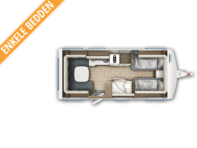 Prachtige Fendt 515 SG Tendenza met enkele bedden. Caravan is voorzien van opvulkussens voor bedverbreding, 2000 kg as, tapijtloperset, citrwater aansluiting, TV steun, Lichtmetalen velgen, Douche armateur en een voortent. Caravan is werkelijk als nieuw.