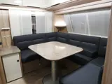 De caravan heeft een gezellige rondzit die u eenvoudig kunt ombouwen tot comfortabele slaapplaats. De ruime keuken is in het midden van de caravan geplaatst. Geheel compleet uitgevoerd, met onder meer een 3-pits kooktoestel, gootsteen met kraan en voldoende bergruimte. Voor een snelle toevoer van warm water is er een boiler aanwezig. De compressor koelkast met vriescompartiment is ruim genoeg voor al uw etenswaren en is altijd koud ongeacht de buiten temperatuur. De keukenbenodigdheden vinden een plekje in de ladekast.