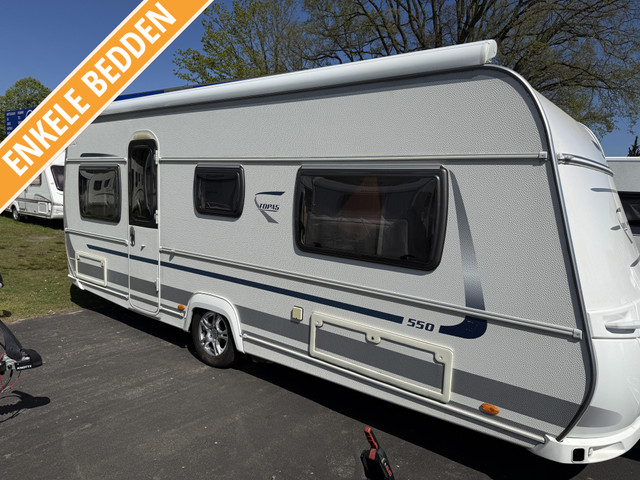MOOIE FENDT TOPAS 550SG MET ENKELE BEDDEN RONDZIT - CASSETTE LUIFEL - VOLAUTOMATISCHE TRUMA MOVER - TRUMA AIRCO - VOLAUTOMATISCHE UITDRAAI STEUNEN , VAN BINNEN EN BUITEN ALS NIEUW RECHTER BOVENZIJDE EEN DEUKJE VOOR DE REST (TOP)