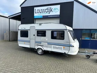 Ruime Hobby uitgevoerd met een 2 persoons bed en rondzit. Voorzien van een Dakluik, Cassettetoilet, Serviceluik, Vouwwand, Schokbrekers, Stabilisator, Spotjes, Combi rollo's, Voortentlamp.