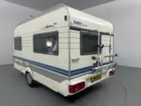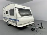 Deze Hobby De Luxe 400 SB is een comfortabele caravan waarin werkelijk overal over is nagedacht om hem zo compact en licht mogelijk te houden. De treinzit is door de verlenging en het extra kussen om te bouwen tot een ruim extra tweepersoonsbed. Voorin vindt u een dwars bed. Deze kunt u ook terug ombouwen tot dinette (de tafel met kussen zijn nog inbegrepen). Voorzien van een voortent en een fietsendrager.