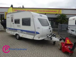 Hobby de Luxe Easy 400 Met Vast Bed en Treinzit Incl Enduro Mover Volautomatisch Enduro Fietsendrager Voorop en Dorema Voortent