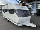 De caravan wordt geleverd met een luxe pakket en diverse hoogwaardige accessoires, waaronder een THULE luifel, een volautomatische mover, een fietsendrager, en stijlvolle zwarte velgen. Optioneel kunt u kiezen voor een voortent.
