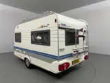 De Hobby De Luxe Easy 400 SF uit 2001 is een compacte en lichtgewicht caravan die bekendstaat om zijn praktische indeling, degelijke bouwkwaliteit en gebruiksvriendelijkheid. Met een totale lengte van ongeveer 590 cm en een breedte van 220 cm is dit model wendbaar en eenvoudig te manoeuvreren, wat hem bijzonder geschikt maakt voor stellen of kleine gezinnen die graag met een kleinere auto op pad gaan. Gebruikers waarderen de 400 SF vooral vanwege zijn rijgemak, compacte formaat en degelijkheid. De caravan is ideaal voor vakanties waarbij flexibiliteit en eenvoud centraal staan.
