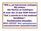 Te koop Gevraagd en Gratis Bemiddeling Van Caravans en Campers Wij zijn meer dan 22 jaar een RDW- Erkend Caravanbedrijf ! U bepaalt zelf de prijs !!