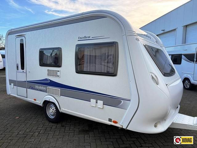 Nette gebruikte Hobby Excellent 440SF met treinzit en dwarsbed, deze mooie Hobby is uitgerust met een voortent.