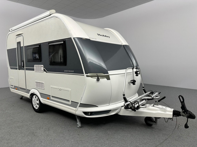 Prachtige Hobby On Tour 390 SF die optimaal gebruikmaakt van zijn ruimte en beschikt over een praktische indeling met een ombouwbare treinzit en een vast bed voorin. Dit exemplaar beschikt een aantal luxe opties zoals een Thule cassetteluifel en een Thule fietsendrager voorop. Zoals altijd zien we ook bij deze wagen waar Hobby zo goed in is: een strakke afwerking en de hoogste kwaliteit. Deze compacte caravan is maar 220cm breed. Wanneer u nu bij ons een caravan of camper aanschaft, kunt u gratis gebruikmaken van onze stallingsmogelijkheid. De caravan of camper kan kosteloos tot en met het voorjaar bij ons blijven staan, zodat u rustig de tijd heeft om een geschikte stalling bij u in de buurt te vinden. Vraag onze medewerkers naar de voorwaarden.