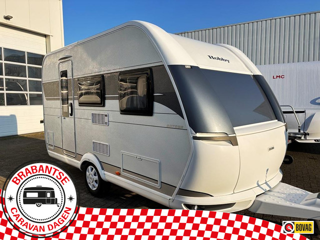 Nette jong gebruikte Hobby Ontour 390SF met een dwarsbed en treinzit, deze mooie jonge hobby is uitgerust met een deeltent.