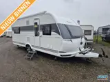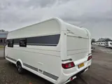 Hobby Prestige 560 CF. Ruime rondzit en een L keuken. Toiletruimte met Douche en Toilet, Koelkast, Kachel Boiler Ringverwarming Bagageluik Groot dakluik Disselafdekking Stabilisator Fietsendrager Cassetteluifel Airco Mover Electrische uitdraaisteunen Het gewicht is naar beneden aan te passen aan uw auto naar bijv. 1800 kg of 1900 kg