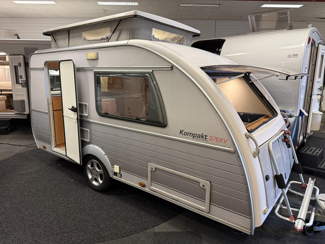 SUPER NETTE KIP KOMPAKT 37EKV MET EEN WALKER LUIFEL/VOOTENT VOORZIEN VAN EEN FIETSENDRAGER VOOROP EN ACHTEROP (IVM EBIKE'S) UITGEVOERD MET EEN KACHEL