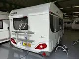 Mooie caravan voorzien van half-automatische mover, fietsendrager en een reservewiel in de dissel.