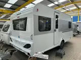 Met achterin een gezellige rondzit (1m98 x 1m51), een middenkeuken (niet tentkant) en voorin de caravan het franse bed (2m00 x 1m38) met daarnaast het cassettetoilet.