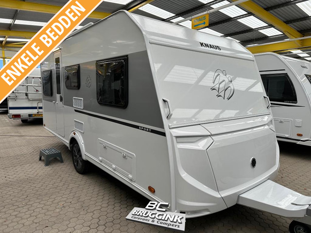 De Sport 460 EU heeft achterin een standaard zit, een middenkeuken, midden toilet en voorin de caravan de 2 enkele bedden.