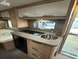 De Südwind 460 EU heeft achterin de caravan een standaard zit, een middenkeuken, middentoilet en voorin de caravan 2 enkele bedden.