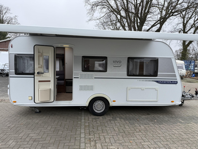 SUPER MOOIE LMC VIVO 470E MET ENKELE BEDDEN MET TUSSENSTUK EN EEN MOOIE ZITGROEP VOORZIEN VAN EEN THULE 6300 CASSETTE LUIFEL MOVER VOLAUTOMATISCHE SCHOTEL MET TV EN TVSTEUN (WERKEND) VLOERVERWARMING VAN BINNEN EN BUITEN ALS NIEUW