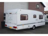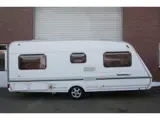 Deze caravan is voorzien van een midden keuken, vast toilet, 4 persoons, voortent, frans bed, trein zit die om te bouwen is tot een 2e bed, mover, fietsen drager, oven, boiler, douche.