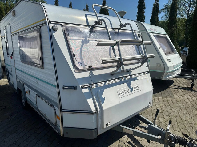 Deze caravan is zo binnengekomen gaat ook zo weer weg bergland caravan met vaste wc twee persoons caravan met voortent kleur blauw grijs