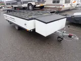 Vouwwagen is voorzien van, keuken, disselbak en neuswiel
