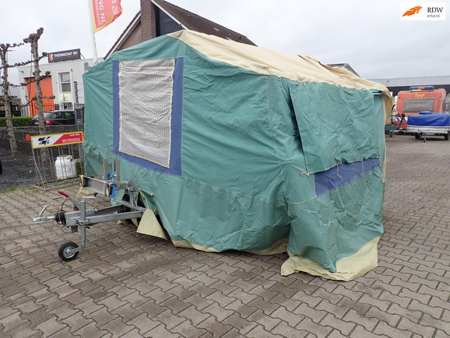 Staat van de tent onbekend, u heeft bij ons de mogelijkheid om de vouwwagen open te vouwen.