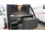 Heeft waste watertank wasbekken met kraan, los gasstel, Koelbox 12/230V, Reserve wiel aan de recht zijwand, Accu + lader/ omvormer (voor stroomloos kamperen), Dakreling (frontrunner), opbergruimte onderbed.