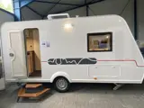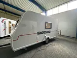 Inclusief een compressorkoelkast, een gaskachel met rondverwarming, een luxe toiletruimte met cassette toilet, een Truma Therm boiler, vaste watertank 50 liter met buitenvulopening, Al-Ko AKS stabilisatorkoppeling, reservewiel met houder in de disselkast, verzwaarde uitdraaisteunen, hordeur, combi cassette's voor alle ramen, Midi Heki dakluik, leesspots, USB aansluitingen, etc.