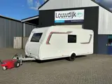 Gezinscaravan van Sterckeman Easy met een 2 persoons bed (extra lang), Treinzit en stapelbed met garage. Voorzien van een GFK Hagelbestendig dak, Garage, XL Lade Koelkast, Heki Dakluik, Boiler, Douche, Disselafdekking, XL Serviceluik, Schokbrekers, Stabilisator, Spotjes, Combi rollo's, Voortentlamp. De caravan betreft een ongebruikt overjarig model.
