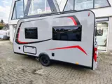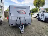 Grijze Polyester buiten wanden en dak, Buiten deur met raam, Zwarte aluminium velgen, Voorbereiding voor fietsen rek op achterwand, fietsenrek op dissel ,