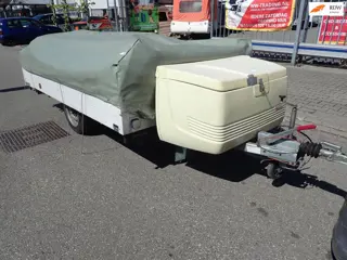 Staat van de tent onbekend, u heeft bij ons de mogelijkheid om de vouwwagen open te vouwen.