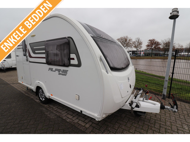 Compacte, lichte caravan met 2 enkele bedden (75 x 200) of een groot bed (190 x 200).