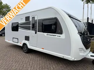 Nieuw binnen: de compleet vernieuwde Sprite Cruzer 530SR met 2 aparte bedden en een luxe badkamer!