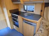 Accessoires: Heki II dakluik, Tempo 100, airmix, boiler, buitenaansluiting 230V, cassettetoilet, deurraam, disselafdekking, douche, groot dakluik, hordeur, kachel, koelkast, magnetron, oven, radio, reservewiel, ringverwarming, schokbrekers, serviceluik, stabilisator, tapijt, ultraheat, vaste watertank, verzwaarde steunen, voortent met glasfiber frame