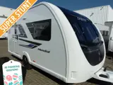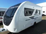 Nieuw binnen in de showroom, de nieuwe Sprite Mondial 420SE met ruime badkamer en ruime zit.
