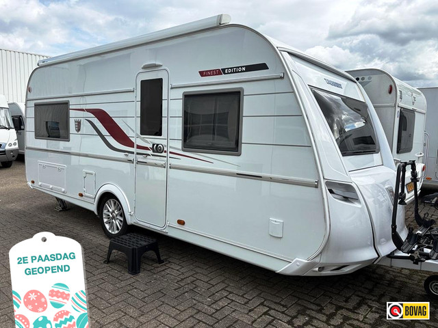 Zeer nette gebruikte Tabbert Da vinci Finest Edition 495HE met 2 aparte bedden die in een handeling te vergrote is naar een groot bed. Deze mooie Tabbert is luxe uitegerust met een Enduro volautomaat mover, Thule Cassette luifel, Walker voortent en een Thule fietsendrager voor op de dissel.