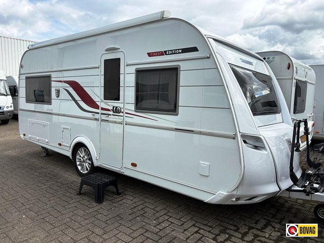 Zeer nette gebruikte Tabbert Da vinci Finest Edition 495HE met 2 aparte bedden die in een handeling te vergrote is naar een groot bed. Deze mooie Tabbert is luxe uitegerust met een Enduro volautomaat mover, Thule Cassette luifel, Walker voortent en een Thule fietsendrager voor op de dissel.