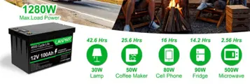 LANPWR 12V 100Ah LiFePO4 Lithium Battery Pack Backup Power, 1280Wh Energy, 4000+ Deep Cycles, Built-in 100A BMS, 24.25lb light weight, Support in Series/Parallel, Perfect for Replacing Most of Backup Power, RV, Boats, Solar, Trolling motor, Off-Grid
