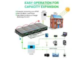 Max connection in series: Up to 4 identical batteries for up to 48V connecting in series. Connection in parallels: it can connect multiple batteries, suggesting no more than 4pcs in parallel. Allow to be extended up to 4 in series and 4 in parallel (Max 4S4P) to get more capacity (Max 600Ah) and higher voltage (24V, 36V, 48V). When the batteries are used in parallel or series, the battery voltage and capacity must be the same and purchased in near time(within 3 months).