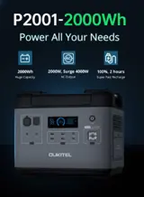 OUKITEL P2001 Ultimate 2000W Portable Power Station, 2000Wh LiFePO4 MPPT Solar Generator with Pure Sine Wave AC Outlets, QC3.0 & USB-C PD 100W, Super Fast Recharge Durable Generator for Home Outdoor Camping RV CPAP Emergencies Solar Battery - EU Plug