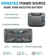 It comes with 200W solar/500w AC/ 12V car port/lead-acid battery recharging mode to recharge itself more flexibly.