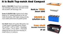 Made with high-quality ABS plastic, this 12V 150Ah LiFePO4 battery pack is durable and long-lasting, and has a wide range of operating temperatures. IP63 level waterproof sets you free from worrying to install indoors or outdoors.