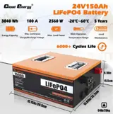 Cloudenergy 24V 150Ah LiFePO4 Battery Pack Backup Power, 3840Wh Energy, 6000+ Cycles, Built-in 100A BMS, Support in Series/Parallel, Perfect for Replacing Most of Backup Power, RV, Boats, Solar, Trolling motor, Off-Grid