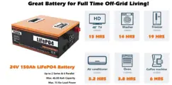 Package Contents 1 x 24V 150Ah LiFePO4 Battery Pack