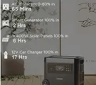 This portable power station can be charged using various methods, including solar panels, AC outlets, and car chargers, about 6 hours for 400W solar panel (charging time is determined by photovoltaic), about 2 hours for mains electricity, about 17 hours for car charging. It is versatile and easy to use, whether you're at home, camping, on the road, or in the wilderness.