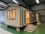 Het chalet is volledig uitgerust voor comfortabel wonen dankzij winterisolatie, centrale verwarming en antraciet kunststof kozijnen met dubbele beglazing. In iedere ruimte zijn ventilatieroosters aanwezig, evenals LED-spotverlichting en voldoende stroompunten. De afwerking wordt compleet gemaakt door een dakgoot uit één stuk.